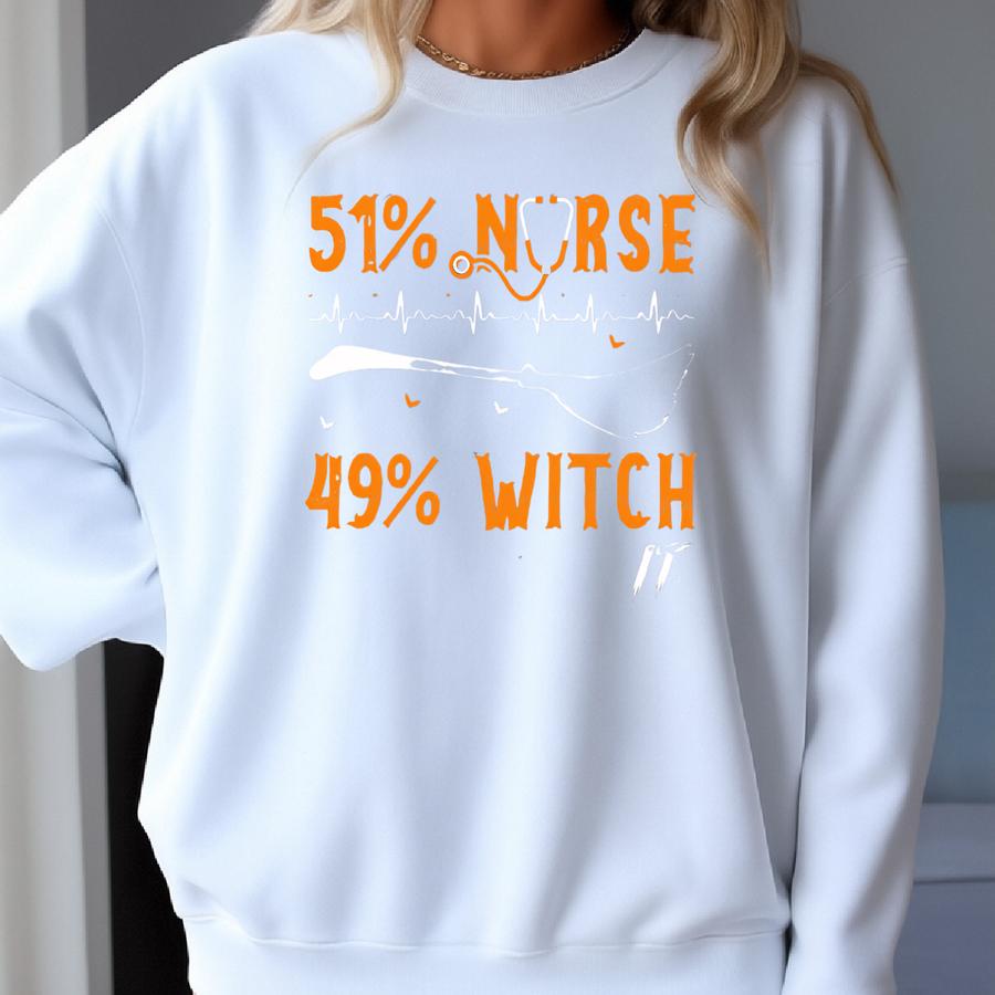 Half Nurse Half Witch Halloween Dtf Transfers | Ready To Press Halloween Direct To Film Transfers Sweatshirt