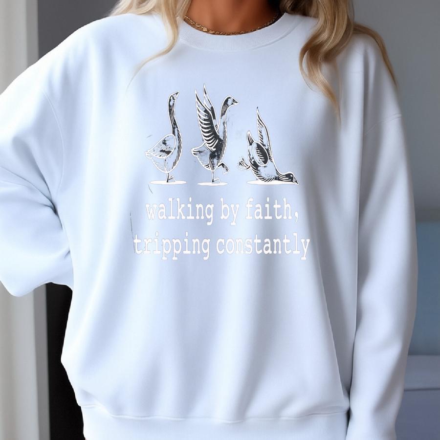 Shirt, Walking By Faith Tripping Constantly Shirt, Silly Goose Shirt, Religious Gift, Bible Verse Tee, Christian Jesus, God Sweatshirt