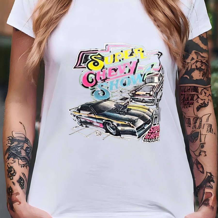Vintage 80s Super Chevy Show Car Camaro Bel Air Black Hoodie Size M T-shirt