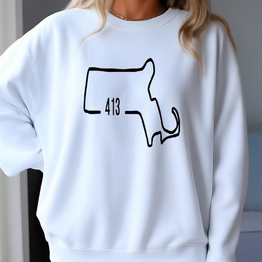 Massachusetts 413 Area Code Crewneck Sweatshirt, Home State Apparel Sweatshirt