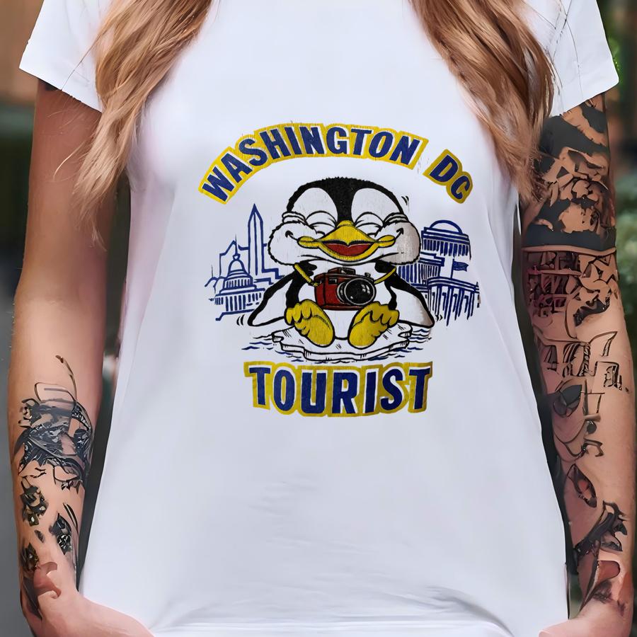 Vintage 80's Washington Dc Tourist Penguin White Crewneck Sweatshirt Size M T-shirt
