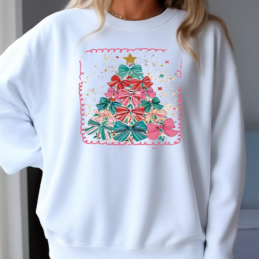 Merry Christmas Bow Tree Sweatshirt, Shiny Christmas Tree And Bow Sweatshirt, Christmas Coquette Bow Sweater, Merry Christmas Shirt Sweatshirt
