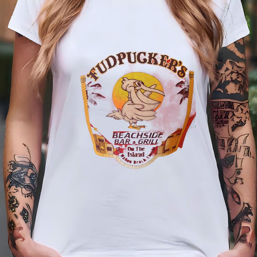 Vintage 80's Fudpuckers Beachside Grill Fort Walton Beach, Florida Red Single Stitch T Shirt Size M T-shirt