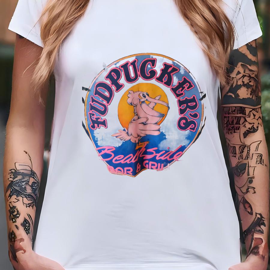 Vintage 80's Fudpuckers Beachside Grill Destin, Florida Neon Orange T Shirt Size M T-shirt