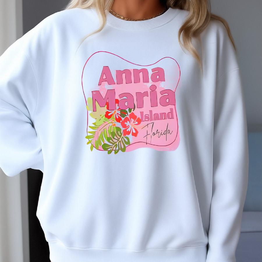 Tropical Flowers Adult Hoodie, Beach Lover Palm Trees Sweatshirt, Anna Maria Island Florida Unisex Hooded Sweatshirt, Vacation Floral Sweatshirt