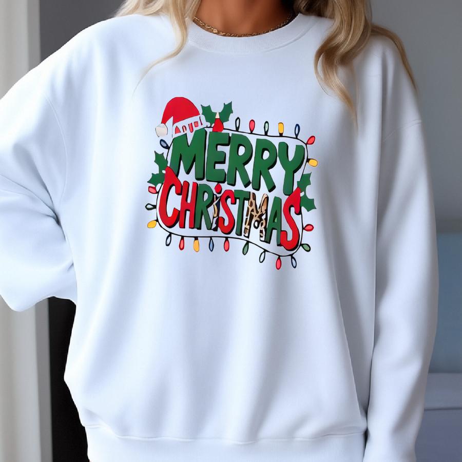 Personalized Merry Christmas Shirts, Custom Family Xmas Outfit, Matching Holiday Pajamas, Christmas Lights Tee, Family Name Christmas Gift Sweatshirt