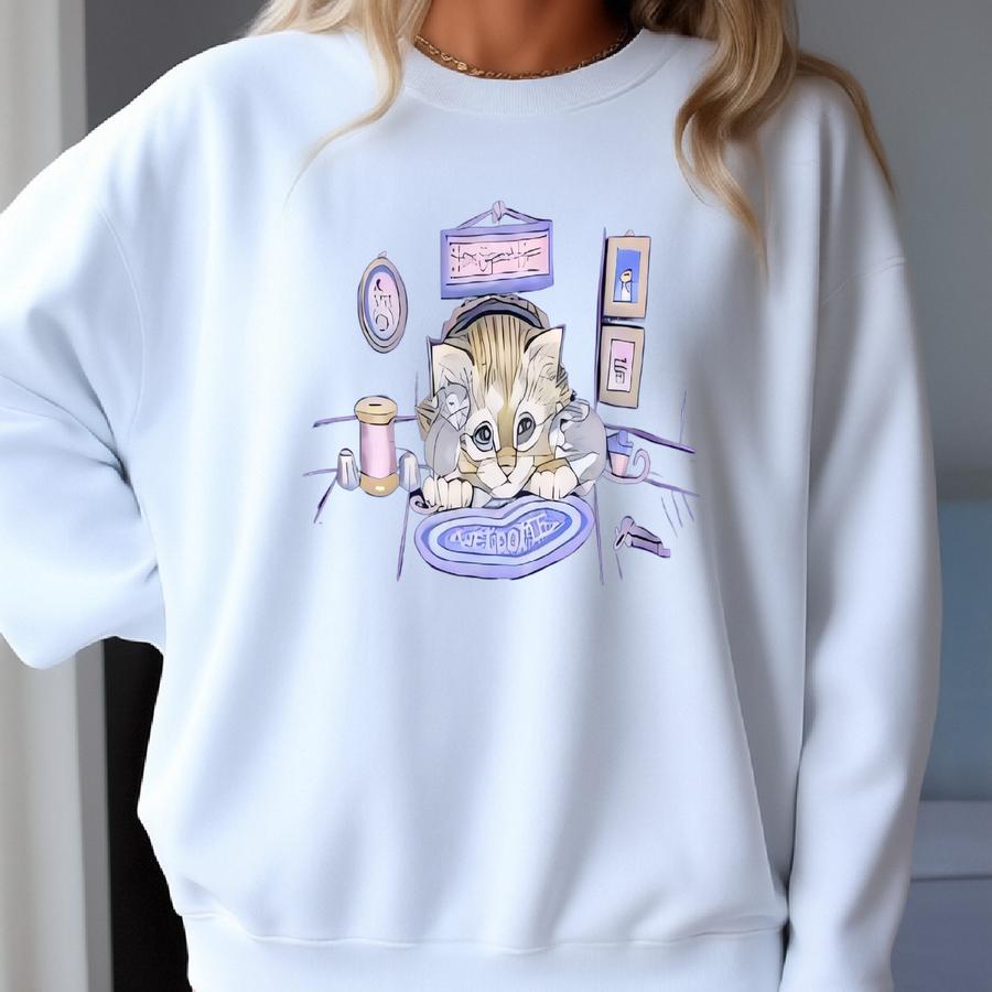 Vintage Morning Sun Kitten Sweatshirt Kitten Crewneck Sweater Kitten Pullover Sweatshirt Kitten Big Print Graphic Sweatshirt Purple Colour Sweatshirt