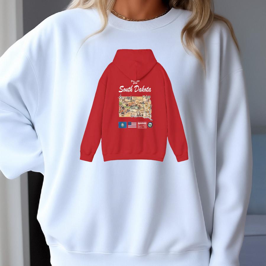 South Dakota State Map - Unisex Hooded Sweatshirt, Art Print, Sweatshirt, Hoodie, T Shirt, T-shirt, Tee, Gift, Vintage, Unisex Hoodie Sweatshirt