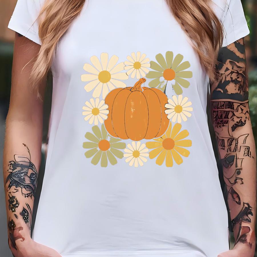® Retro Pumpkin Shirt | Fall Floral Pumpkin Tee | Aesthetic Thanksgiving Shirt | Cozy Autumn Shirt | Fall Shirt For Women T-shirt