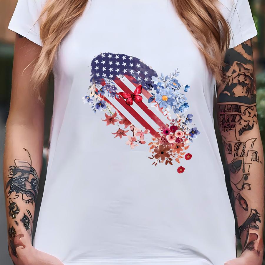 Floral Usa Flag Shirt: 4th Of July American Tee T-shirt