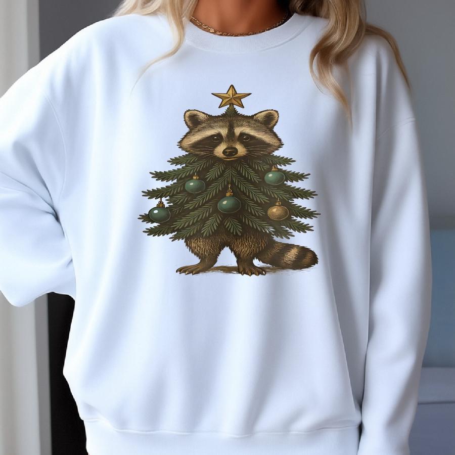 Raccoon Christmas Sweatshirt | Funny Holiday Pullover | Animal Tree Crewneck For Men Women Sweatshirt