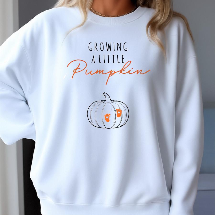 Growing A Little Pumpkin Shirt, Fall Pregnancy Announcement Tee, Maternity Thanksgiving, Baby Reveal Gift Sweatshirt