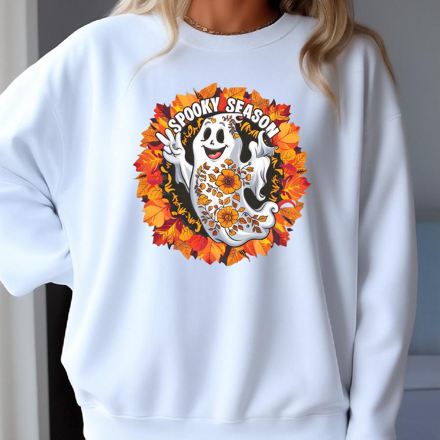 Retro Spooky Season Ghost Sweatshirt, Halloween Fall Vibes Sweatshirt