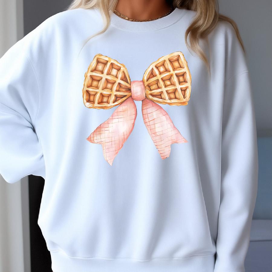 Waffle Coquette Bow Sweatshirt, Pink Waffle Breakfast Shirt, Cute Waffle Mom Sweatshirt, Breakfast Lover Shirt, Brunch Bridal Shower Gift Sweatshirt