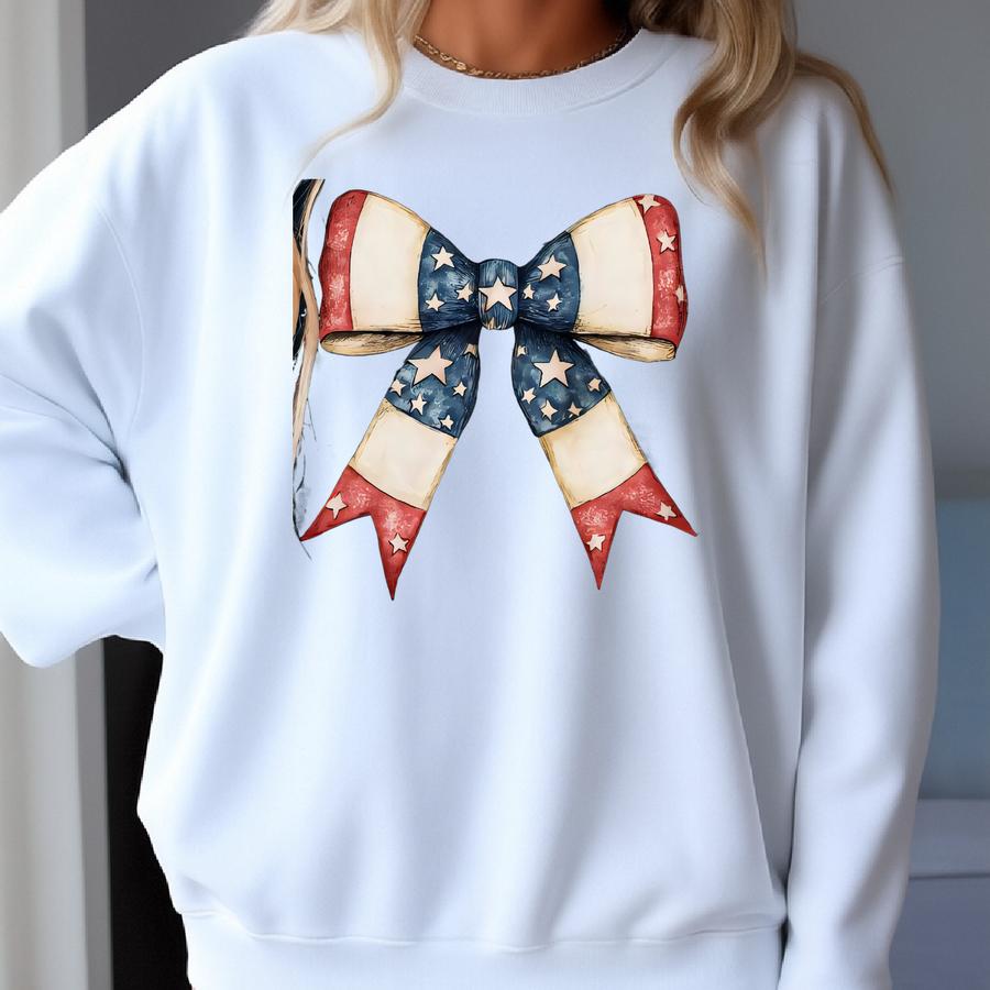 Vintage American Flag Coquette Bow Shirt, Red White Blue Girly July 4th, Usa Flag Coquette , Patriotic Gift For Wife Sweatshirt