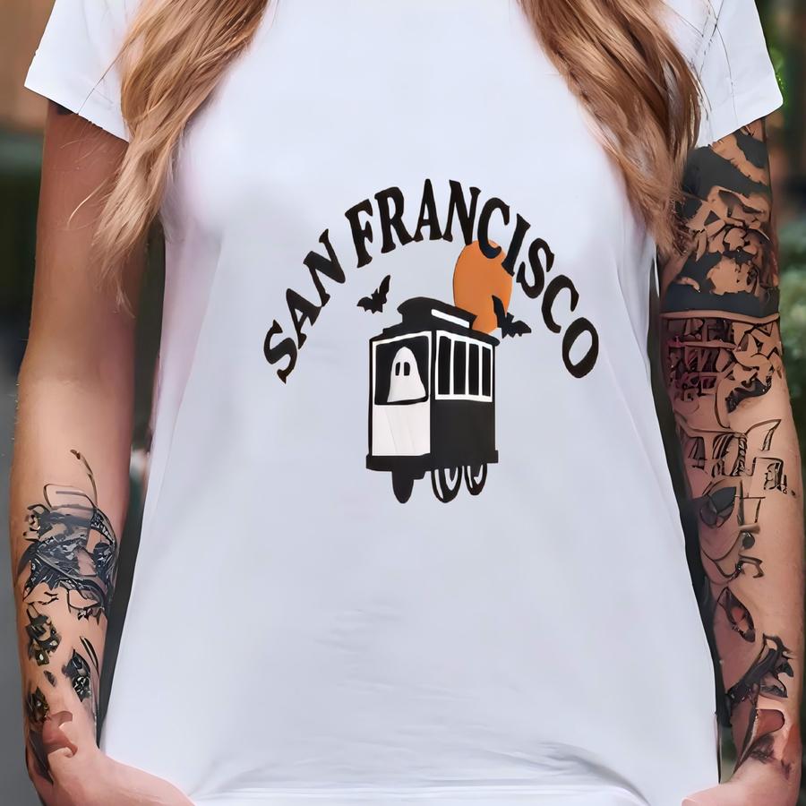 San Francisco Halloween Sweatshirt: Ghost Cable Car Design T-shirt