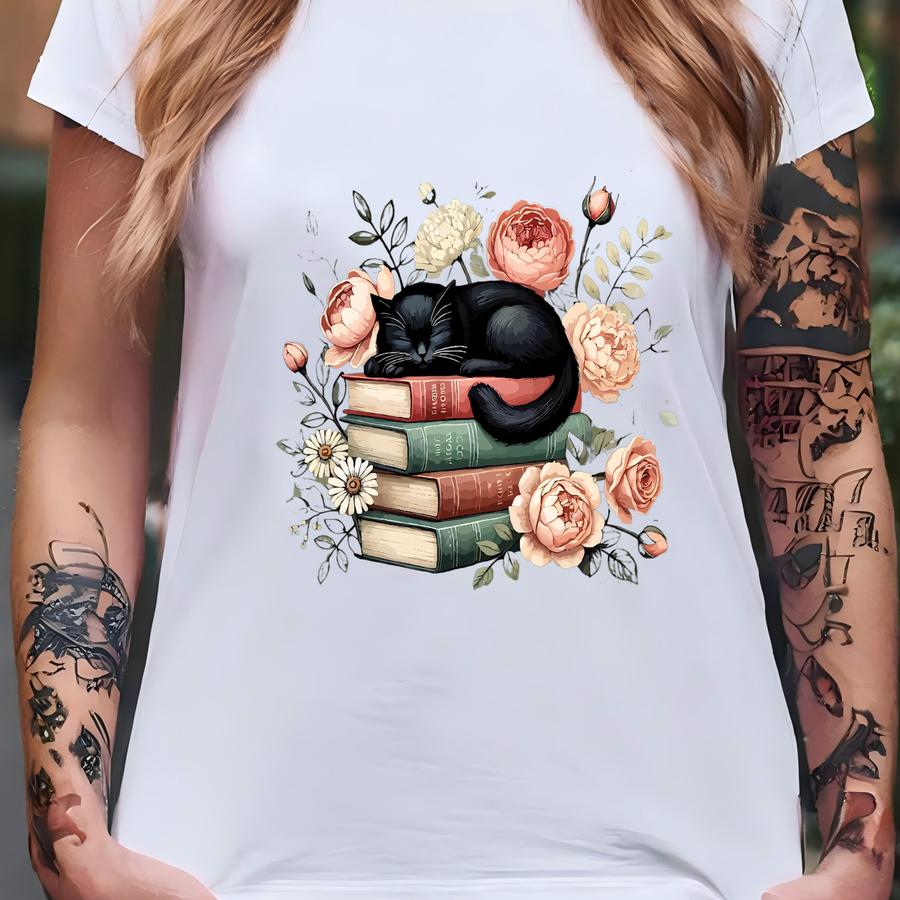 Floral Reading Cat Sweatshirt: Cozy Book Lover Pullover T-shirt