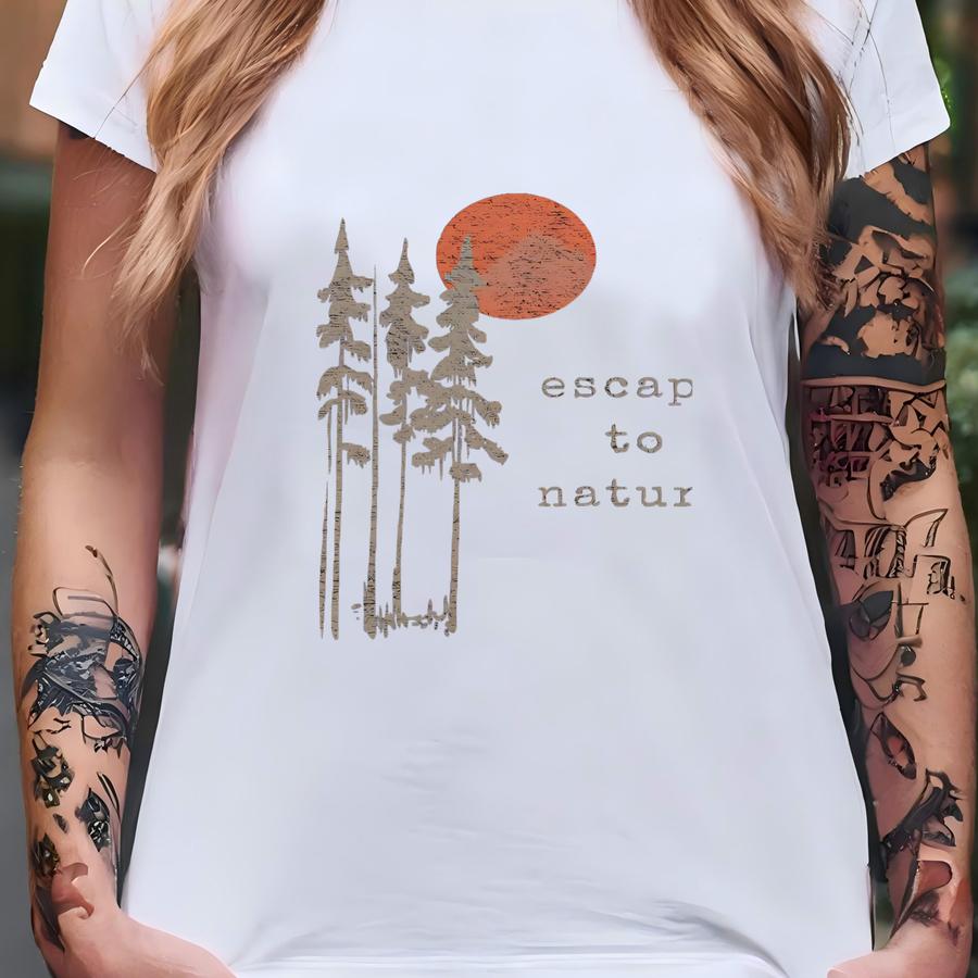 Escape To Nature Eco-friendly Pine Trees Sunrise Tshirt Gift Tee, Organic Sustainable T-shirt