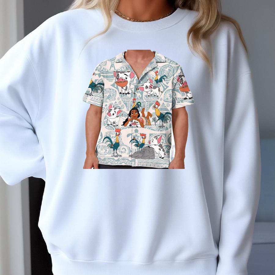 Moana Hawaiian Shirt Maui Pua And Heihei Hawaiian Shirt, Moana Birthday Button Up Shirt, Family Matching Trip Shirt, Birthday Gift Sweatshirt