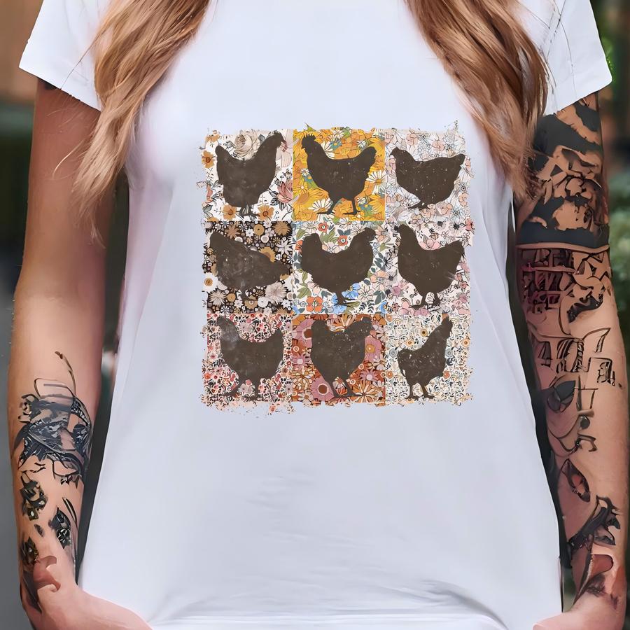 Wildflower Chicken Sweatshirt: Retro Farmhouse Crewneck T-shirt
