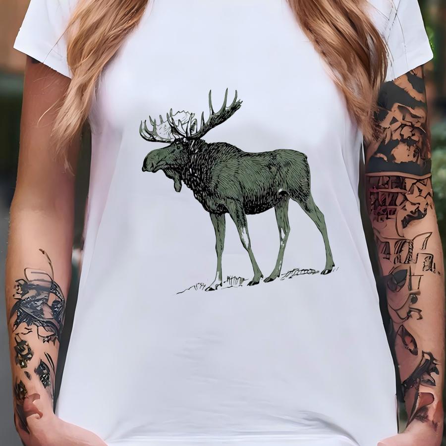 Graphic Moose Hooded Sweatshirt, Elk Hoodie T-shirt
