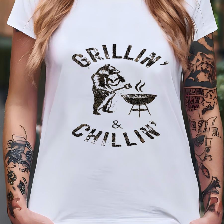 Funny Mens Grilling Grill Lover Tshirt Gift, Dad Father Tee Shirt, Graphic Grilling And Chilling Fathers Day Shirt T-shirt