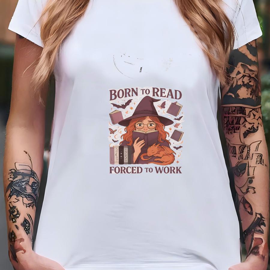 Born To Read Forced To Work Shirt, Bookwork Aesthetic Hoodie, Book Club Halloween Hoodie, Spooky Season Crew Neck, Reading Crew Neck T-shirt