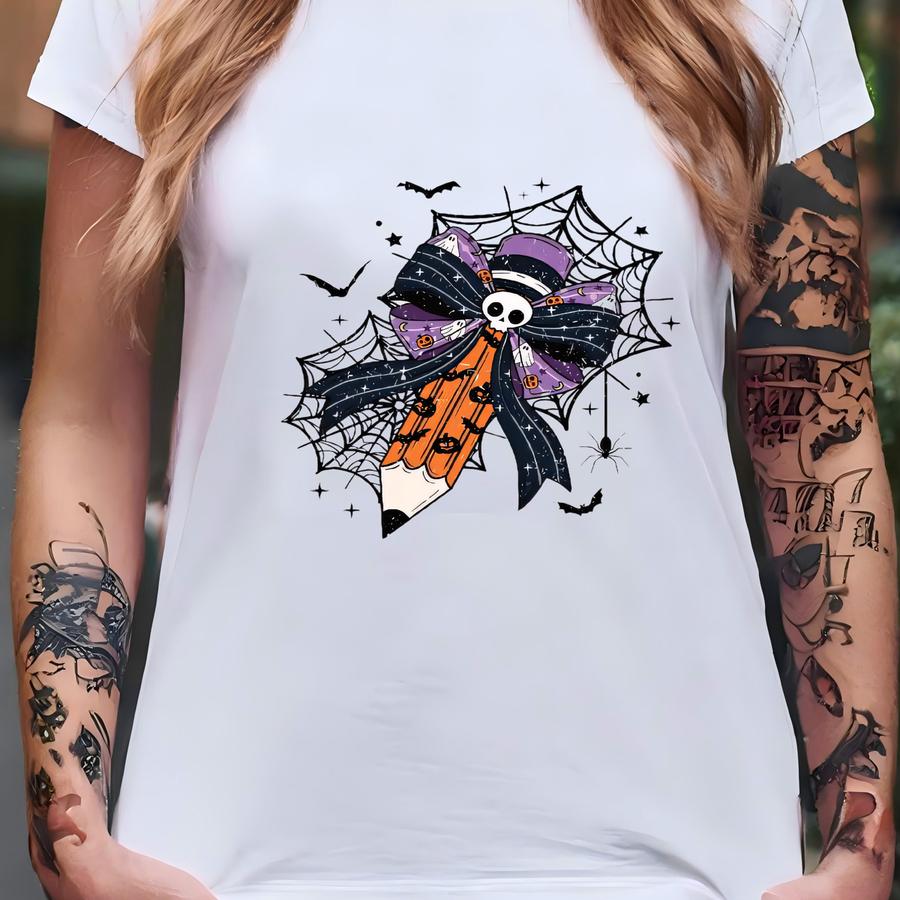 Custom Halloween Pencil Shirt, Halloween Sweater, Halloween Hoodie, Spooky Coquette Bow Shirt, Halloween Teacher Sweater, Back To School T-shirt