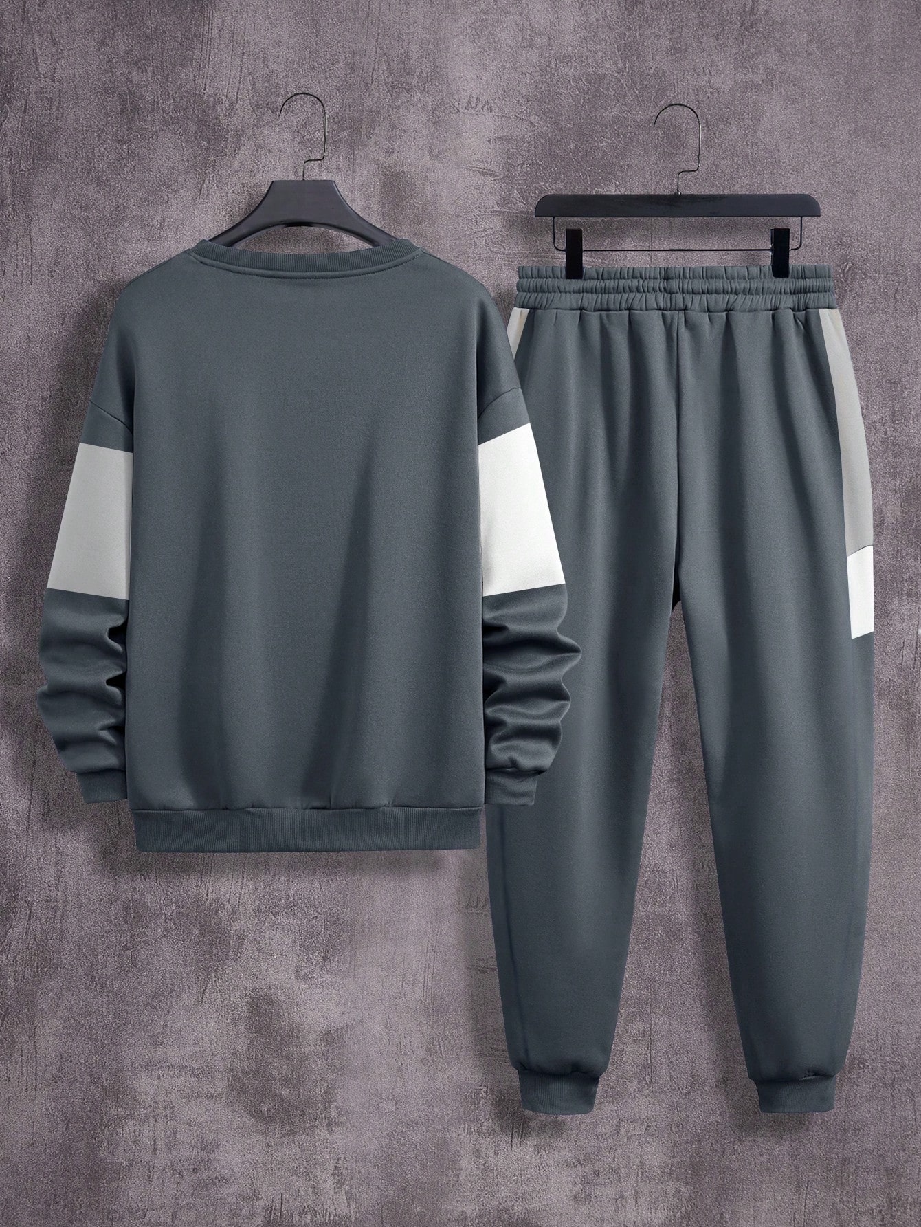 Manfinity Dauomo 2pcs Men's Casual Sports Daily Contrast Color Round Neck Drop Shoulder Sweatshirt And Sweatpants Set, Autumn