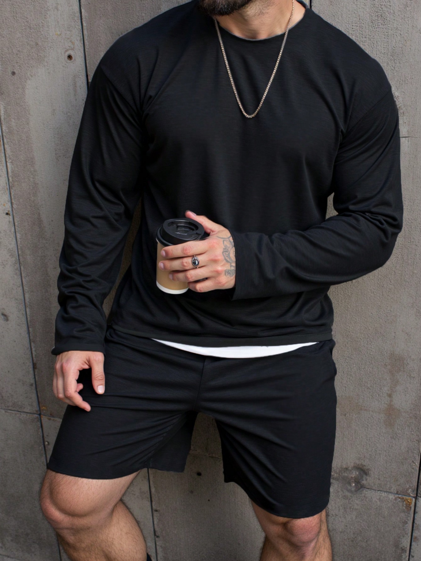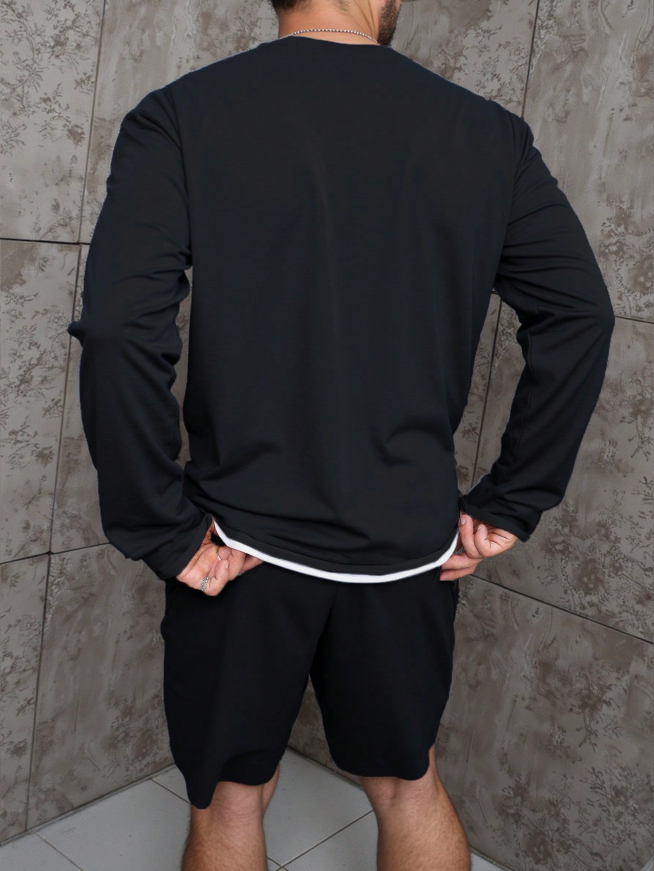 Manfinity Dauomo Men's Casual Solid Color Sweatshirt And Shorts Set, Spring And Autumn