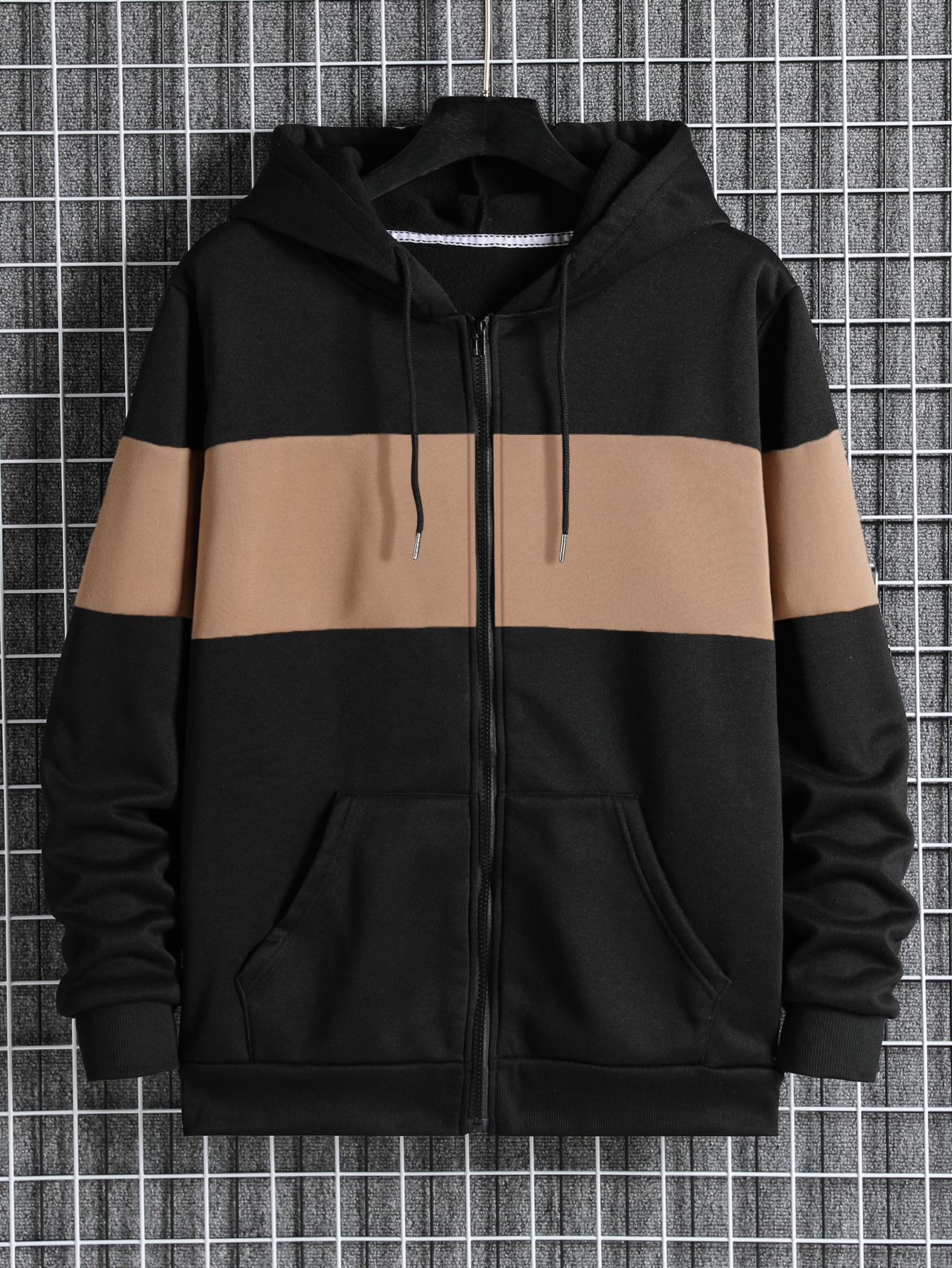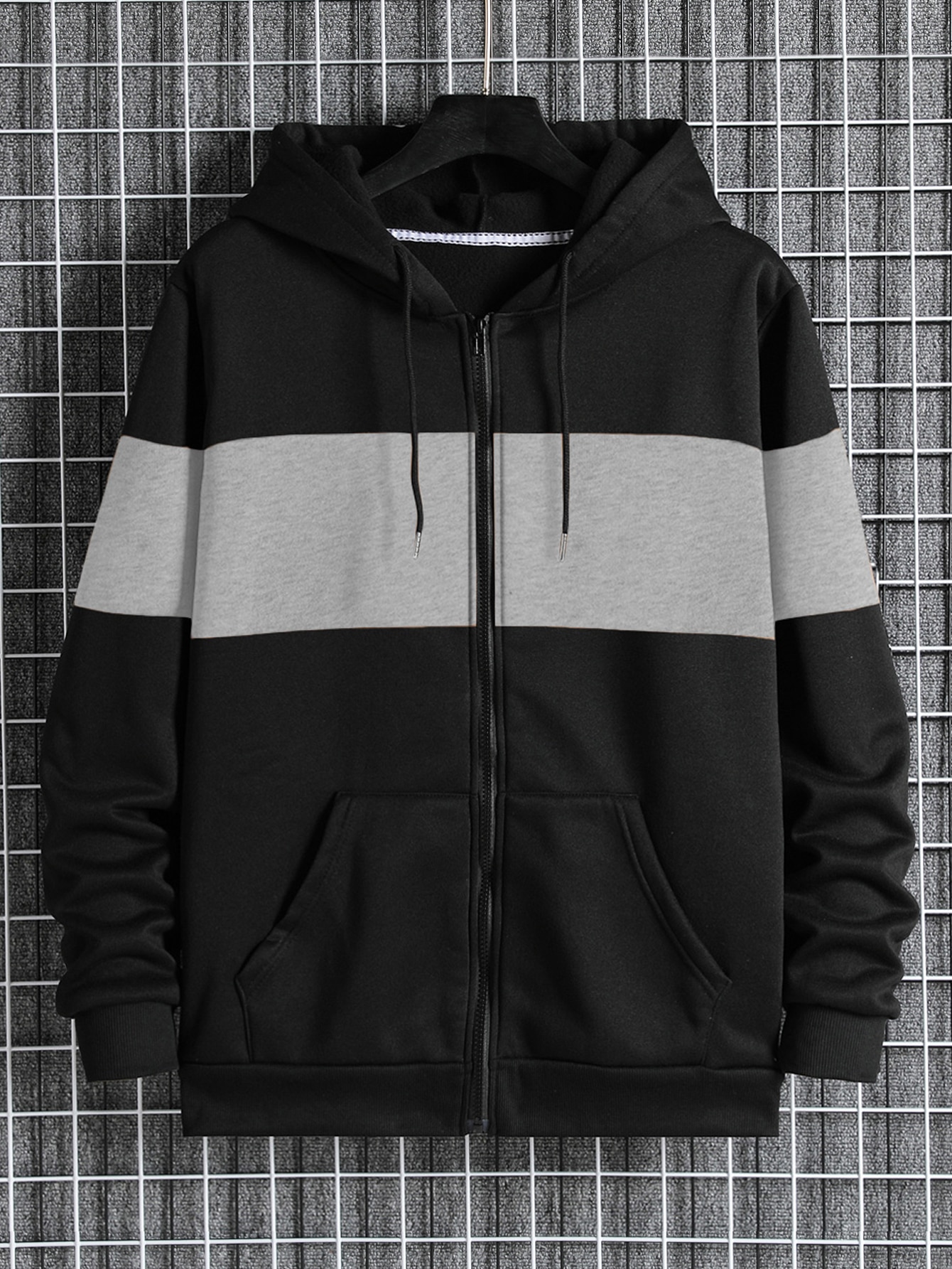 Men's Colorblock Zip Up Hoodie With Drawstring