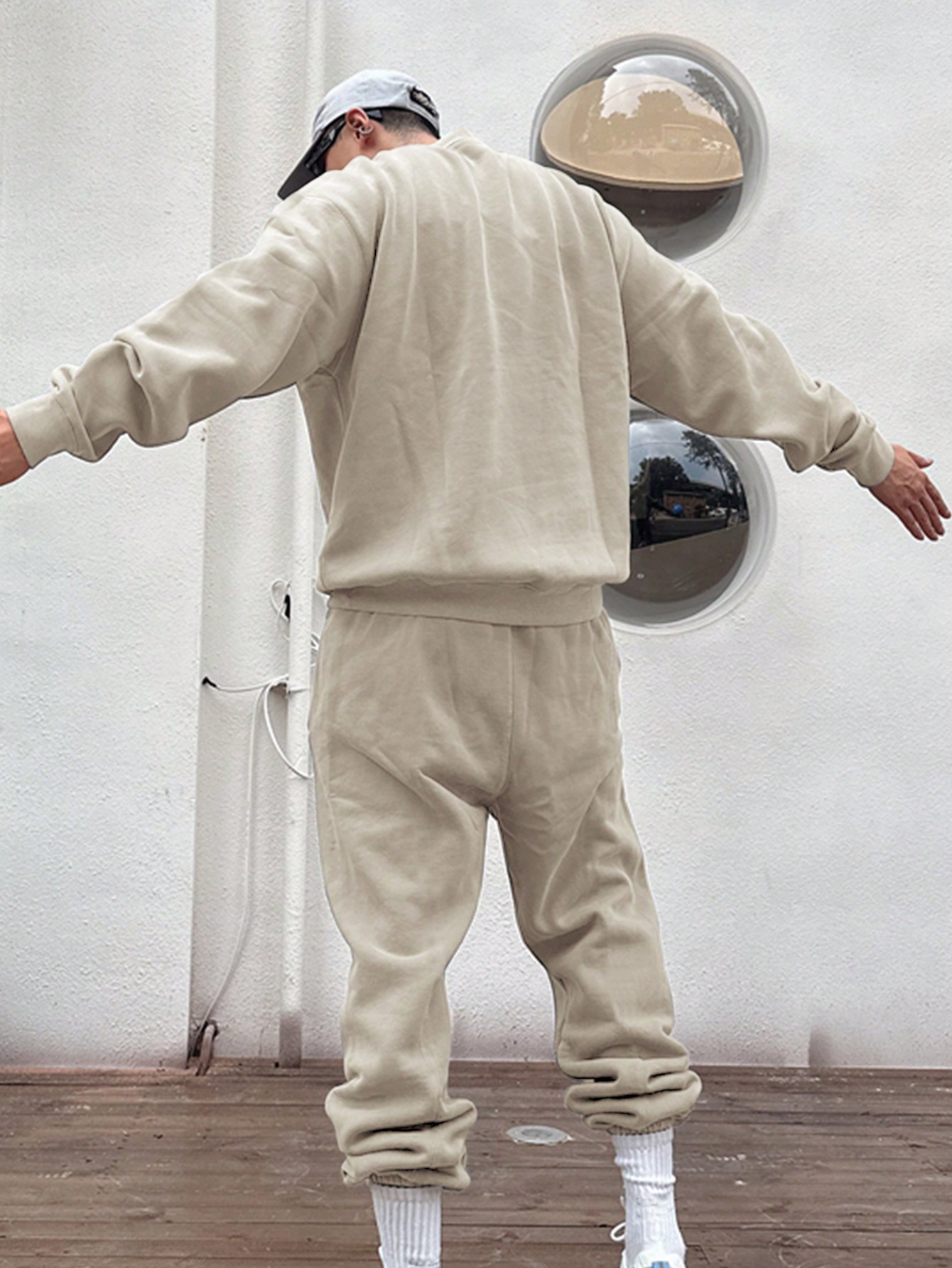 Men's Solid Color Crew Neck Long Sleeve Top And Pants Casual Suit